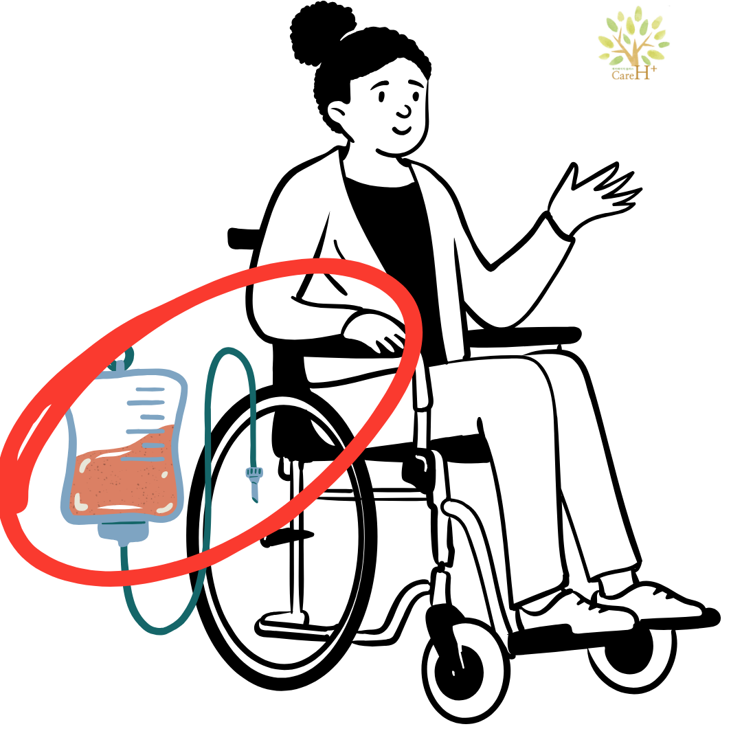 수액줄이 바퀴에 걸리지 않도록 정리합니다.